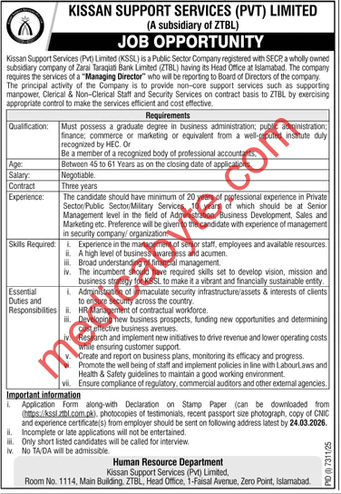 Kissan Support Services KSSL New Jobs 2026 Posted on March 9, 2026 Job Type: Regular Jobs Job Category: Jang Newspaper Jobs Job Location: Islamabad Jobs Kissan Support Services KSSL New Jobs 2026 Kissan Support Services KSSL New Jobs 2026 Apply for this position Full Name *Email *Phone *Cover Letter *Upload CV/Resume *Allowed Type(s): .pdf, .doc, .docxBy using this form you agree with the storage and handling of your data by this website. *