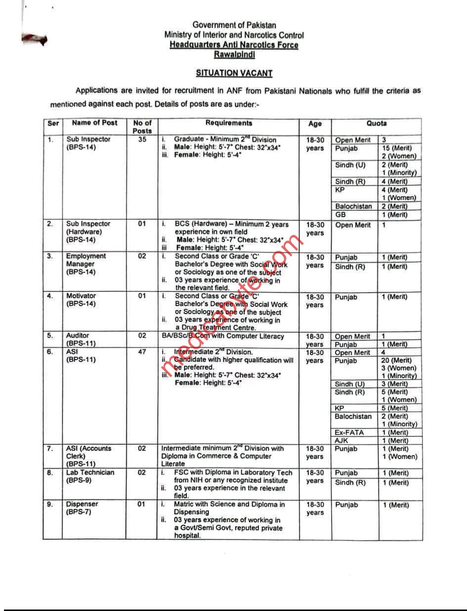 Ministry of Interior & Narcotics Force Rawalpindi Jobs 2026 Posted on March 9, 2026 Job Type: Regular Jobs Job Category: Federal Government Jobs Job Location: Rawalpindi Jobs Ministry of Interior & Narcotics Force Rawalpindi Jobs 2026 Ministry of Interior & Narcotics Force Rawalpindi Jobs 2026 Apply for this position Full Name *Email *Phone *Cover Letter *Upload CV/Resume *Allowed Type(s): .pdf, .doc, .docxBy using this form you agree with the storage and handling of your data by this website. *