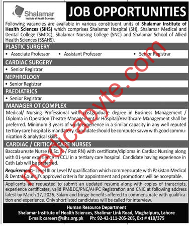 Shalamar Institute of Health Sciences SIHS New Jobs 2026 Posted on March 9, 2026 Job Type: Contract Jobs Job Category: Jang Newspaper Jobs Job Location: Lahore Jobs Shalamar Institute of Health Sciences SIHS New Jobs 2026 Shalamar Institute of Health Sciences SIHS New Jobs 2026 Apply for this position Full Name *Email *Phone *Cover Letter *Upload CV/Resume *Allowed Type(s): .pdf, .doc, .docxBy using this form you agree with the storage and handling of your data by this website. *