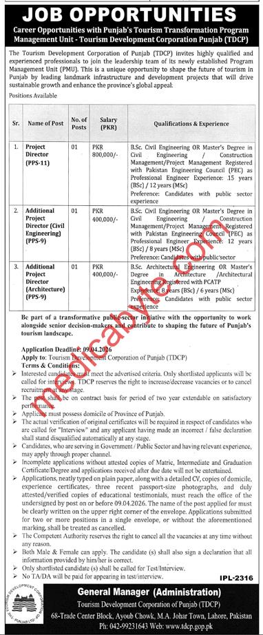 Tourism Development Corporation of Punjab (TDCP) New Jobs 2026