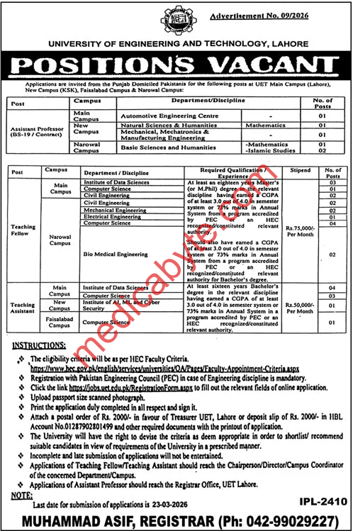 University of Engineering & Technology UET Lahore Jobs 2026 Apply Now Posted on March 9, 2026 Job Type: Contract Jobs Job Category: Jang Newspaper Jobs Job Location: Lahore Jobs University of Engineering & Technology UET Lahore Jobs 2026 Apply Now University of Engineering & Technology UET Lahore Jobs 2026 Apply Now Apply for this position Full Name *Email *Phone *Cover Letter *Upload CV/Resume *Allowed Type(s): .pdf, .doc, .docxBy using this form you agree with the storage and handling of your data by this website. *