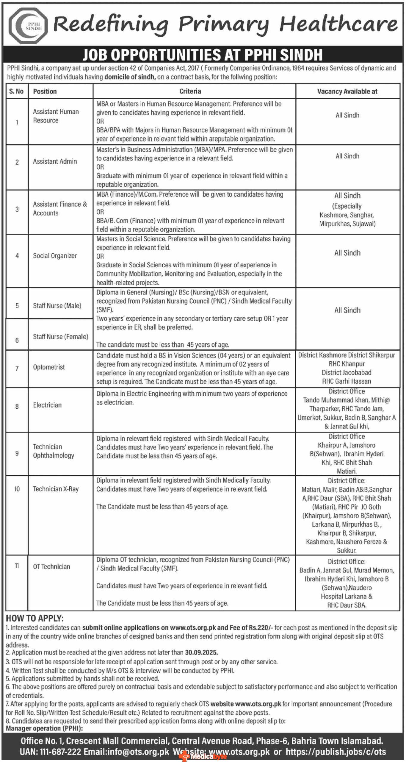 PPHI Sindh is a company set up under the Companies Act of 2017 (formerly Companies Ordinance, 1984). It is seeking applications from dynamic and motivated individuals with a Sindh domicile for various positions on a contract basis.